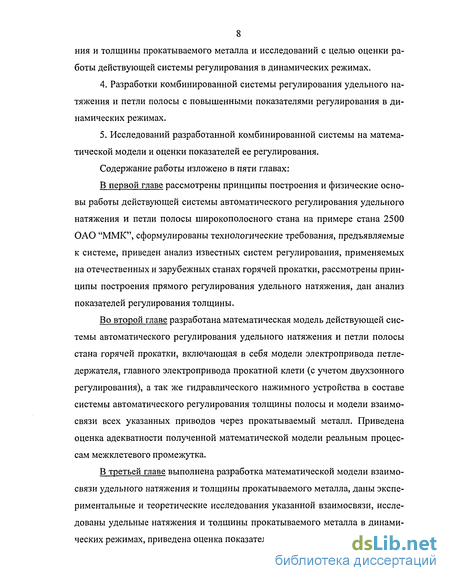8 ния и толщины прокатываемого металла и исследований с целью оценки работы действующей системы регулирования в динамических режимах.