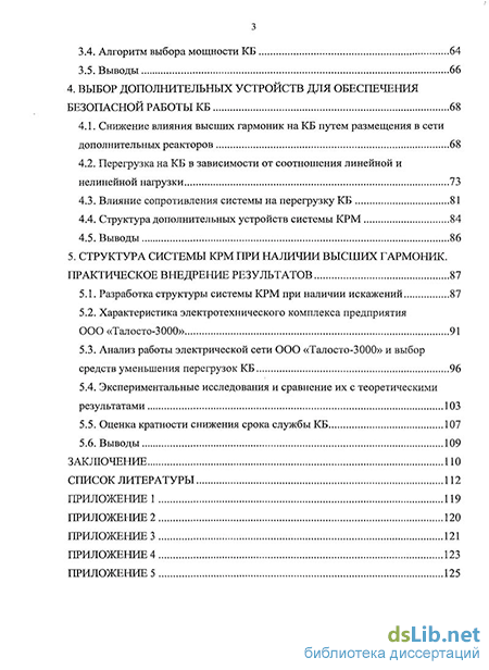 Личный вклад автора. Выявлены закономерности протекания электромагнитных процессов в системе электроснабжения при наличии гармонических искажений, возникающих как со стороны внешнего источника относительно ввода предприятия, так и в сети самого предприятия. Разработана структура размещения и обоснован выбор параметров дополнительных реакторов для снижения перегрузок КБ токами высших гармоник. Разработана структура системы компенсации реактивной мощности при наличии ВГ, обеспечивающая безаварийную работу и снижение перегрузок КБ, эффективность которой подтверждена экспериментальными исследованиями на промышленном предприятии.
