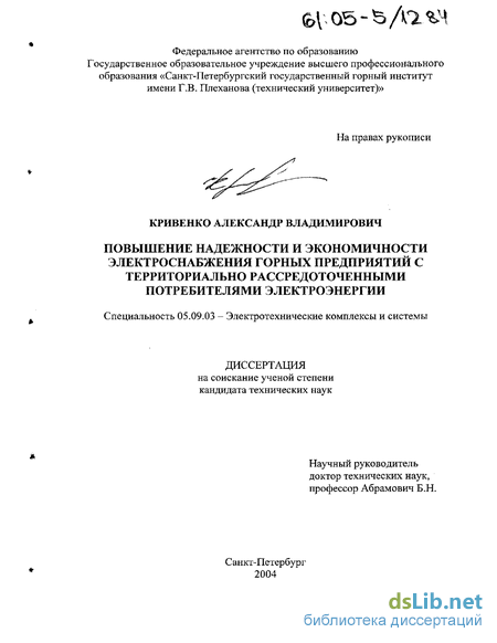 Глава 1. Научно-технические проблемы повышения надежности и экономичности электроснабжения предприятий по добыче и переработке полезных ископаемых 8