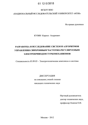 В области автоматического управления и регулирования режимов работы СД значительный вклад внесли такие ученые, как Д.П.Петелин, В.А.Венников, А.ИВажнов, А.М.Вейнгер, Г.Б.Онищенко, М.М.Ботвинник, Ю.Г.Шакарян, М.П.Титов, И.Я.Браславский. Данное направление науки развивалось в МЭИ, ОАО «Электропривод», УПИ и в ряде других отечественных ВУЗах и НИИ. При этом, однако, не уделялось должного внимания проблемам согласования технологических и энергетических режимов работы преобразователя частоты, синхронного двигателя и его возбудителя при работе группы технологически взаимосвязанных турбомеханизмов. Таких режимов работы, например, как частотный пуск и частотное регулирование производительности турбомеханизма, согласованное включение в работу необходимого числа турбомеханизмов, прямой пуск и работа от питающей сети, переключение источника питания СД от ПЧ к сети при жестком согласовании выходного напряжения ПЧ по амплитуде, частоте и фазовому сдвигу с напряжением питающей сети при одновременном регулировании технологического параметра.