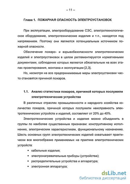 1.1. Анализ статистики пожаров, причиной которых послужили электротехнические устройства 11