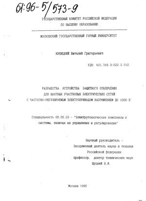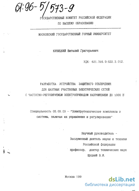 class4 РАЗРАБОТКА И ИССЛЕДОВАНИЕ УСТРОЙСТВА ЗАЩИТНОГО ОТКЛЮЧЕНИЯ ДЛЯ ШАХТНОЙ ЭЛЕКТРИЧЕСКОЙ СЕТИ ПЕРЕМЕННОГО ТОКА