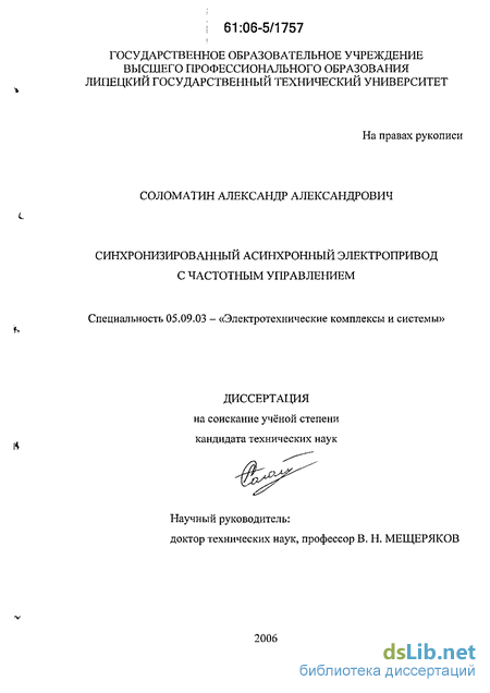 Актуальность работы. В настоящее время на многих промышленных предприятиях в России и за рубежом повышается уровень требований к автоматизированному электроприводу. Главным направлением исследований является создание новых регулируемых электроприводов, отличающихся высокими эксплуатационными и экономическими показателями. Можно указать несколько причин, обусловливающих необходимость расширения областей применения регулируемого электропривода: