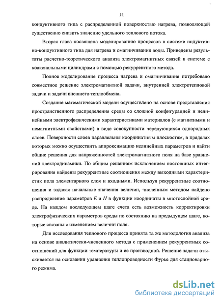Вторая глава посвящена моделированию процессов в системе индуктив- но-кондуктивного типа для нагрева и омагничивания воды. Приведены результаты расчетно-теоретического анализа электромагнитных связей в системе с коаксиальными цилиндрами с помощью рекуррентного метода.