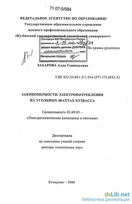Захарова Алла Геннадьевна. Закономерности электропотребления на угольных шахтах Кузбасса : диссертация ... доктора технических наук : 05.09.03 / Кузбас. гос. техн. ун-т.- Кемерово, 2006.- 328 с.: ил. РГБ ОД, 71 07-5/584