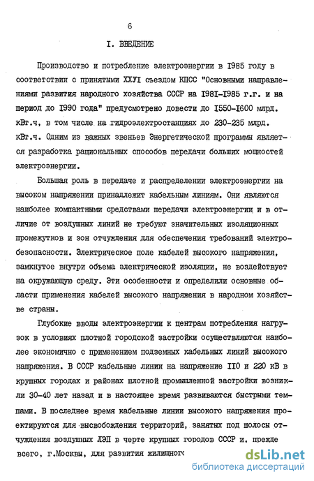 Глубокие вводы электроэнергии к центрам потребления нагрузок в условиях плотной городской застройки осуществляются наиболее экономично с применением подземных кабельных линий высокого напряжения. В СССР кабельные линии на напряжение НО и 220 кВ в крупных городах и районах плотной промышленной застройки возникли 30-40 лет назад и в настоящее время развиваются быстрыми темпами. В последнее время кабельные линии высокого напряжения проектируются для высвобождения территорий, занятых под полосы отчуждения воздушных ЛЭП в черте крупных городов СССР и, прежде всего, г.Москвы, для развития жилищного и гражданского строитель-