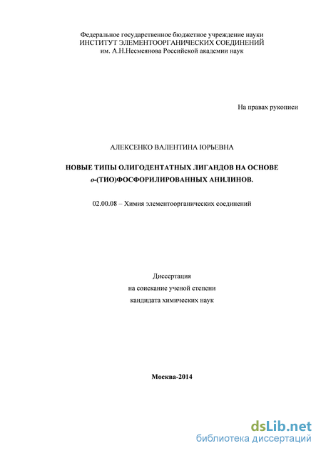 ГЛАВА 2. Новые типы олигодентатных лигандов на основе о-(тио)фосфорилированных анилинов (обсуждение результатов)