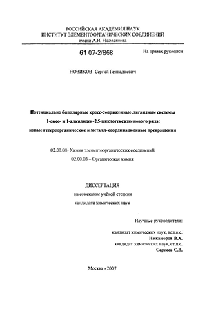 Актуальность проблемы. Работа продолжает цикл исследований Группы прикладной металлоорганической химии ИНЭОС РАН по развитию элементоорганической химии циклоненасыщенньгх лигандов, содержащих 2,5-циклогексадиенилиденовый структурный фрагмент Ранее наше основное внимание было направлено на развитие богатого синтетического потенциала этого класса соединений Теперь область наших интересов перемещается в первую очередь на исследование возможности их применения в современных архитектурах рабочих узлов молекулярно-электронных и фотоэлектронных устройств - прежде всего, "молекулярных проводов", "молекулярных переключателей" и "молекулярных роторов" (от лат roto - вращаю, rotatio -круговращение) в развитие обнаруженного ранее в ИНЭОС РАН нового стереодинамического явления обратимой ядерно-электронно коррелируемой "редокс-ротации", движущей силой которой являются внутримолекулярные окислительно-восстановительные ("редокс") процессы с участием атомов переходных металлов (В А Никаноров, В И Бахмутов, М В Галахов, С В Сергеев, А И Яновский и сотр, 1986)