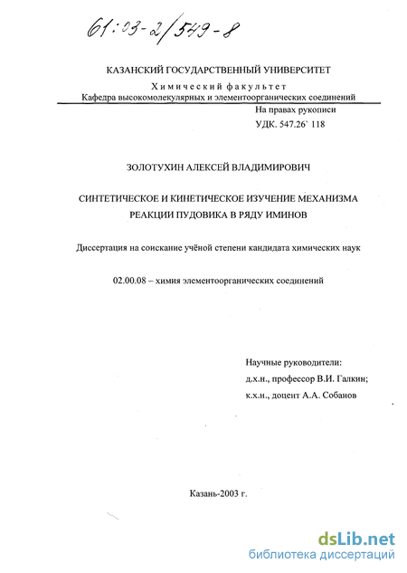 - Кинетические исследования реакции Пудовика в ряду иминов
