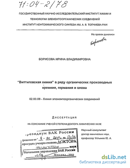 В последние годы опубликовано несколько обзоров по химии органических производных элементов 14 группы с кратными связями [63-68, 93, 113] и по тяжелым аналогам карбенов [93, 114-119], Результаты проведенных исследований по синтезу, изучению структуры и свойств элементоорганпческих бетаинов обобщены в обзорах [120, 121]. Поэтому было нецелесообразно выделять литературный обзор в диссертации, а ее основные разделы сопровождены литературными справками.