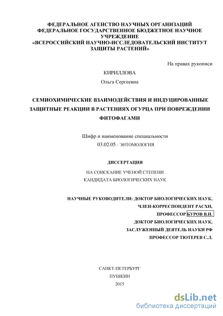- Особенности семиохимических взаимодействий при повреждении огурца посевного оранжерейной белокрылкой