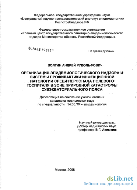 Это определяет важное значение обеспечения противоэпидемической безопасности медицинских формирований, прежде всего полевых многопрофильных госпиталей, работающих в зонах эпидемиологического риска. Противоэпидемическая защищенность является одним из основных условий эффективной работы полевого госпиталя в чрезвычайной ситуации. Она достигается проведением целого комплекса санитарно-противоэпидемических (профилактических) мероприятий, цель которых недопущение заноса инфекций в соматические отделения госпиталя, профилактика внутригоспитального заражения больных и персонала госпиталя, своевременная локализация и ликвидация возникших эпидемических очагов инфекционных заболеваний, предупреждение выноса инфекций за пределы лечебно-профилактического учреждения [Смирнов И.А., 1996; Зуева Л.П., 2005].