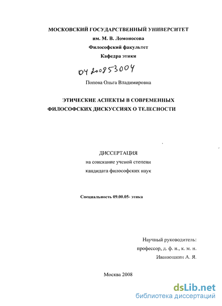 Исследование этических аспектов современных дискуссий о телесности поднимает вопрос об основных предпосылках и истоках различных «дискурсов о теле». В диссертационной работе будет предпринята попытка показать взаимосвязь между либерализацией жизни и распространением такой линии поведения современного индивида, которая характеризуется повышенным вниманием в своему собственному телу, что в проекции на массовую культуру выразилось в ее телоцентричности. При этом телоцентричность культуры будет рассматриваться нами в качестве важнейшего фактора, выявляющего смещение ценностных доминант в общественной морали, а определенные характеристики телесности (осознание ее в качестве собственности, орудийного основания жизнедеятельности, материала для эстетического преобразования и др.) будут проанализированы нами в качестве признаков, раскрывающих нравственное общественное сознание конкретной эпохи.