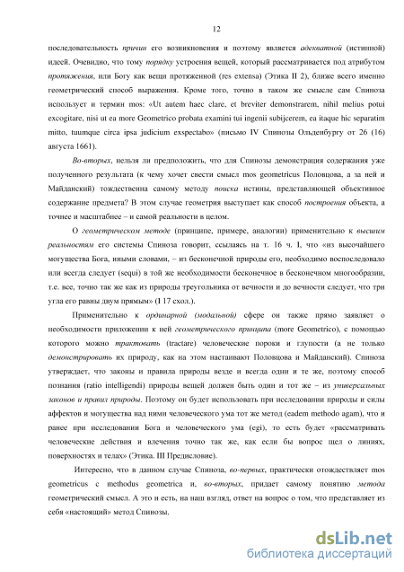 инструментария Спинозы, его методологии и принципов построения его системы. Речь идет, в