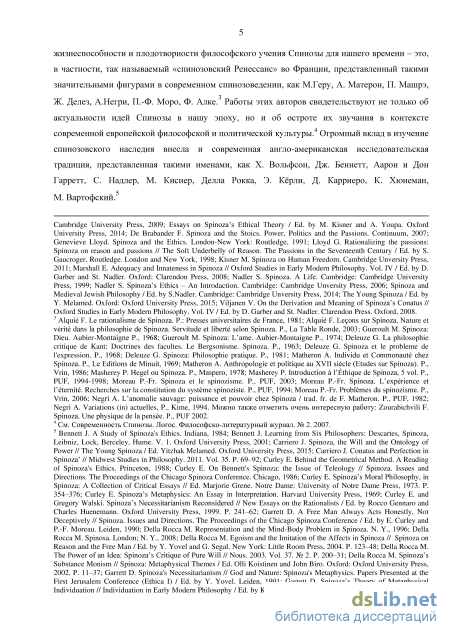 5 своей задачей систематически осветить проблему соотношения этики и метафизики в его доктрине. Многие авторы монографий или статей, рассматривающие самые разные аспекты философии Спинозы, так или иначе, касаются этой фундаментальной, на наш взгляд, темы в спинозоведении, но она еще не стала объектом всестороннего анализа.