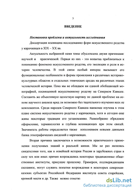 Актуальность выбранной нами темы обусловлена двумя причинами: научной и практической. Первая из них - это попытка приблизиться к пониманию феномена искусственного родства, его эволюции и роли в истории человечества. В этой связи особый интерес вызывают его функциональные особенности и формы проявления в различных историко-культурных областях и отдельных этнических средах на различных этапах человеческой истории. Пока мы не обладаем ни единой обобщающей монографией, посвященной искусственному родству на Северном Кавказе. Составить же объективную целостную картину по данной проблеме на основе научного анализа вряд ли возможно без тщательного изучения всех ее компонентов. Среди народов Северного Кавказа наименее изучена в этом плане система искусственного родства у карачаевцев, хотя и сегодня еще живы некоторые традиции его установления. Разнообразно обрядовое оформление, терминология и глубина возникающих при этом связей. Значимость работы определяется также пополнением новыми данными банка этнографических сведений о карачаевцах.