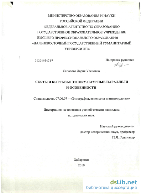 Таким образом, в этнографической литературе, если не прямо, то косвенно рассматриваются вопросы этнической, этнолингвистической (языковой) близости, схожести в области материальной и духовной культуры якутов и кыргызов. Однако исследований монографического плана, посвященных выявлению и анализу этнокультурных параллелей и особенностей изучаемых народов, ни в российской, ни в кыргызской этнографии не имеется.