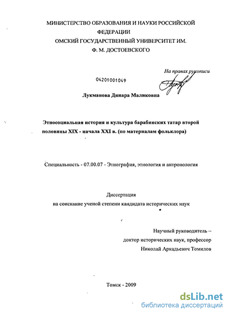 Существенно расширяют круг используемых нами материалов и опубликованные источники. Наибольший интерес в связи с темой исследования представляет работа академика В. В. Радлова, в которой представлены уникальные произведения эпического жанра сибирских татар -дастаны. Фольклорные произведения записаны В. В. Радловым на диалекте барабинских татар, поэтому автор диссертации перевела два дастана и поместила перевод в Приложение. Не менее ценными являются и материалы, собранные ленинградской исследовательницей - лингвистом Л. В. Дмитриевой.