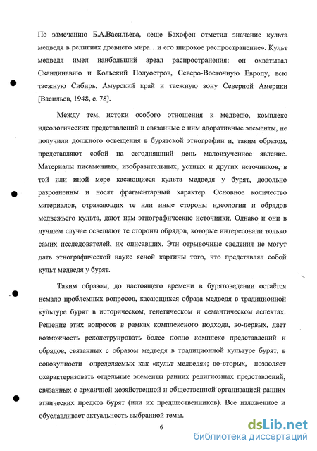 Степень изученности проблемы. Обзор исследовательской литературы, касающейся проблемы изучения культа медведя у бурят, особенно у ранних авторов, показывает, что в целом она носит описательный характер. Специальных же работ, в которых бы детально и комплексно исследовались структура и генезис, обрядовая атрибутика медвежьего культа у бурят, в исследовательской этнографической литературе на сегодняшний день не имеется.