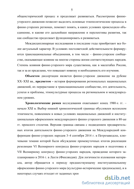 Объектом диссертации является финно-угорское движение на рубеже XX–XXI вв., предметом – история формирования региональных национальных движений, их перерастание в транснациональное сообщество, его деятельность, успехи и проблемы, этнокультурные процессы на региональном и международном уровнях.