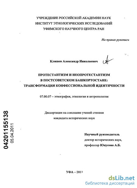 лены и проанализированы факторы, обуславливающие приход в протестантизм представителей православных и исламских этноконфессиональных групп населения Башкортостана; исследованы и введены в научный оборот данные по основным протестантским и неопротестантским объединениям на территории РБ; изучены и систематизированы материалы текущего архива Совета по делам религий при Правительстве РБ о протестантских религиозных объединениях в период с 1986 по 1991 гг.; на основе материалов текущего архива Совета по делам религий при Правительстве РБ и материалов полевых исследований автора определена динамика изменения численности протестантских и неопротестантских религиозных объединений и их членов на территории РБ за период с 1986 по 2009 гг.; выявлены социальные характеристики членов неопротестантских религиозных объединений, а также данные об отношении неопротестантов к некоторым вопросам мировоззренческого и богословского характера, их отношении к другим конфессиям и религиозной политике органов государственной власти; данное исследование, посвященное этнологическому аспекту трансформации конфессиональной идентичности, проведено на территории РБ впервые.
