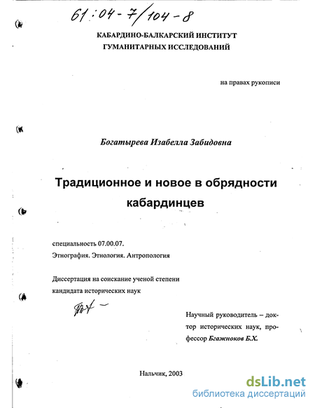 Цель работы - раскрыть существующие отношения, степень и характер преемственных связей традиционного и нового в различных сферах обрядовой жизни кабардинцев.