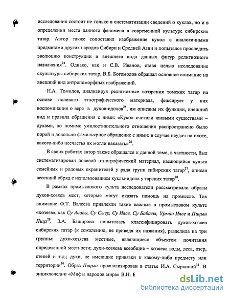 исследования состоит не только в систематизации сведений о куклах, но и в определении места данного феномена в современной культуре сибирских татар. Автор также сопоставил изображение кукол с аналогичными предметами других народов Сибири и Средней Азии и попытался проследить эволюцию конструкции и внешнего вида данных фигур религиозного назначения24. Однако, как и СВ. Иванов, ставя целью исследование скульптуры сибирских татар, В.Б. Богомолов обращал основное внимание на внешний вид антропоморфных изображений.