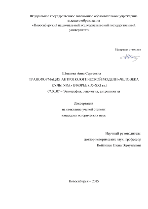 3 Трансформация антропологической модели «человека культуры» в контексте социально-политических процессов и культурной ситуации в Корее в XX в 84