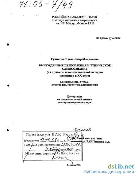 ИСТОРИОГРАФИЯ ПРОБЛЕМЫ. Проблема этнического самосознания, увязанная с насильственными переселениями, в отечественной науке как самостоятельная проблема практически не изучалась. В той или иной степени к ней подходили ученые, изучавшие влияние депортационной травмы на этнокультурный облик народа; большая часть таких работ, преимущественно исторических, показывала негативное влияние насильственных депортаций и их демографические и социально-культурные последствия (A.M. Некрич, Н.Ф. Бугай, А. Гонов, М. Поль, В.Б. Убушаев, П.Д. Бакаев). Большая часть исследований по депортации калмыков подходит к проблеме односторонне: драматизирует и са-крализирует эту трагедию в истории народа (П.Д. Бакаев, В.Б. Убушаев, П.О. Годаев). Редкие социально-антропологические исследования показывают такие процессы, сопровождавшие сталинские депортации, как например, процесс изменения социальных структур и усиление группового единства в неблагоприятных социально-политических условиях (В.А. Тишков).