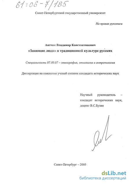 Степень изученности темы. Научный интерес к традиционным верованиям русских, а особенно к низшей мифологии и демонологии впервые был проявлен в последние десятилетия XVIII в. Именно тогда были предприняты первые попытки собрать и привести в систему сведения о ритуальной картине мира русских. Так, в 1768 году М.В.Попов опубликовал работу «Описание древнего славянского языческого баснословия, собранного из разных писателей и снабденного примечаниями»1. Аналогичный словарь под названием «Абевега русских суеверий, идолопоклоннических жертвоприношений, свадебных и простонародных обрядов, колдовства, шаманства и проч.» в 1786 году был составлен М.Д.Чулковым2. Традиция публикаций такого рода материалов была продолжена в начале XIX в. В 1807 г. вышел словарь «Славянская и российская мифология» А.С. Кайсарова3. Характеризуя названные издания, следует отметить, что интересующему нас образу «знающего человека» в указанных работах уделялось не так уж много места. Материал, главным образом, черпался из различного рода опубликованных источников. И, тем не менее, была осуществлена классификация и систематизация имеющихся данных, они были соотнесены с верованиями других народов.