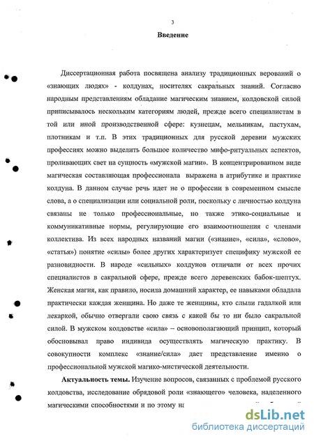 Актуальность темы. Изучение вопросов, связанных с проблемой русского колдовства, исследование обрядовой роли «знающего» человека, наделенного магическими способностями и по этому находящегося «за чертой» обыденной жизни, анализ традиционных магических практик - все эти темы являются актуальными в современной этнографии по целому ряду причин.