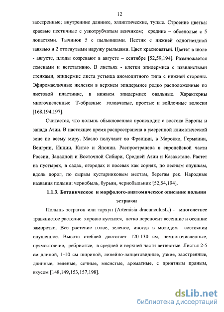 1.1.3 Ботаническое и морфолого-анатомическое описание полыни эстрагон 12