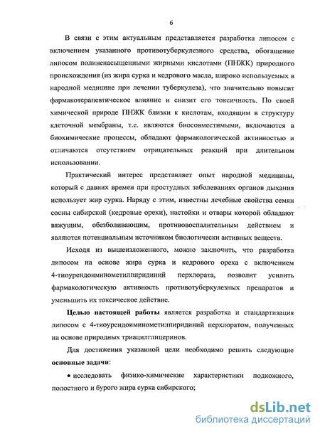 В связи с этим актуальным представляется разработка липосом с включением указанного противотуберкулезного средства, обогащение липосом полиненасыщенными жирными кислотами (ПНЖК) природного происхождения (из жира сурка и кедрового масла, широко используемых в народной медицине при лечении туберкулеза), что значительно повысит фармакотерапевтическое влияние и снизит его токсичность. По своей химической природе ПНЖК близки к кислотам, входящим в структуру клеточной мембраны, т.е. являются биосовместимыми, включаются в биохимические процессы, обладают фармакологической активностью и отличаются отсутствием отрицательных реакций при длительном использовании.