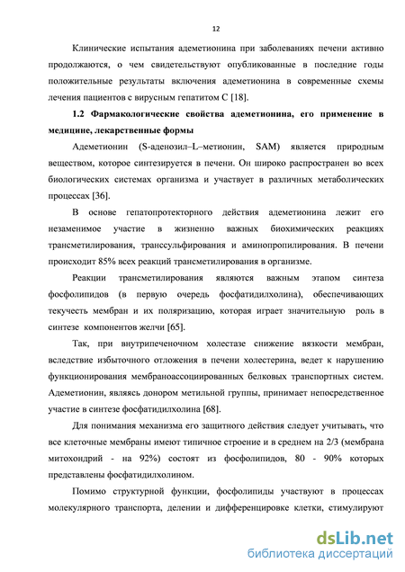 1.2 Фармакологические свойства адеметионина, его применение в медицине, лекарственные формы 12