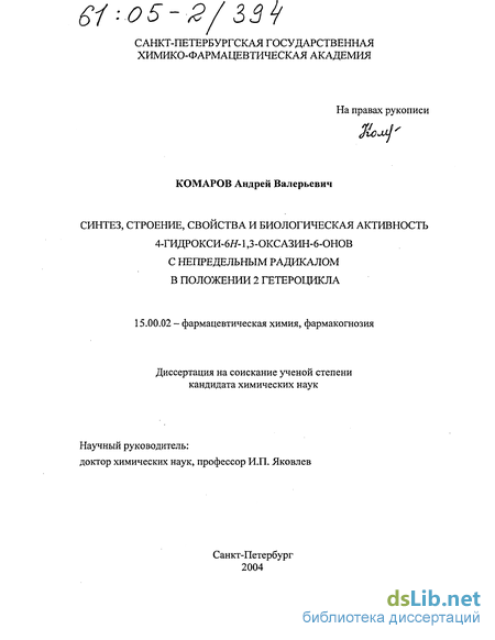 5. Параметры стандартизации биологически активных веществ из ряда полученных 4-гидрокси-6//-1,3-оксазин-6-онов 94