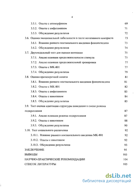 3.6.1. Влияние раннего постанального введения фенциклидина 73