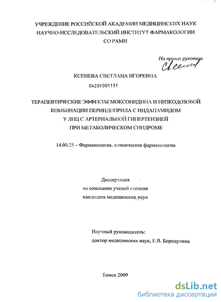 Таким образом, сопоставление клинических и метаболических эффектов низкодозового комплексного гипотензивного препарата и агониста имидазолиновых рецепторов позволит проследить пути реализации их терапевтического действия и сравнить их клиническую эффективность в коррекции МС.