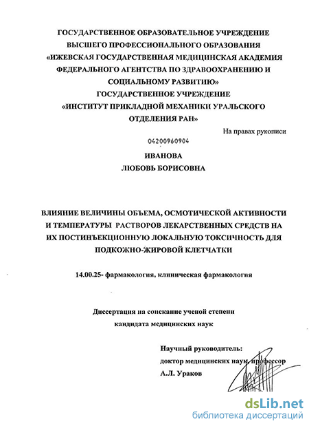 Актуальность темы. «Локальная постинъекционная токсичность препаратов» является малоизученной областью клинической фармации и клинической фармакологии (Ahmed I., 2006). В частности, перечень контролируемых показателей качества лекарственных препаратов, предназначенных для инъекций, до сих пор лишен таких показателей, как осмотическая активность и локальная токсичность для подкожно-жировой клетчатки (ПЖК), хотя при инъекциях именно дегидратирующих средств, препаратов кальция и калия в клетчатку наиболее часто возникают постинъекционные некрозы (Михайлов И.Б., 2003; Харкевич Д.А.,, 2007; Машковский М.Д., 2007). Кроме этого, до сих пор не конкретизирована роль локальной гипо-, нормо и гипертермии ПЖК для реализации и предотвращения локальной токсичности лекарственных средств, не разработаны способы безопасных инъекций потенциально токсичных препаратов и стандарты обкалывания постинъекционного инфильтратов ПЖК, образованных гипертоническими растворами (Большая Российская энциклопедия лекарственных средств, 2001).