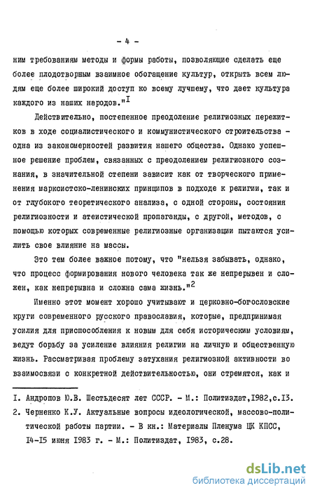 Степень разработки проблемы. К анализу путей и методов приспособления русского православного богословия в новых социальных условиях советские ученые обратились еще в 20-30-е годы.* Правда, проблемы, которые рассматривались авторами, касались в основном политического взаимоотношения с новым для церкви государственным строем и некоторых вопросов социального плана. Такой подход к изучению православного богословия в указанный период был обусловлен тем, что развертываемая атеистическая пропаганда требовала в первую очередь разоблачения контрреволюционной деятельности православия в глазах народа, тщетности попыток духовенства обелить свое прошлое. Кроме этого, все усилия церковно-богословских кругов в этом направлении ограничивались указанными рамками и не затрагивали теолого-философских аспектов, самой догматики.