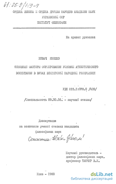 - Становление и развитие научно-атеистического воспитания в высших учебных заведениях Венгрии