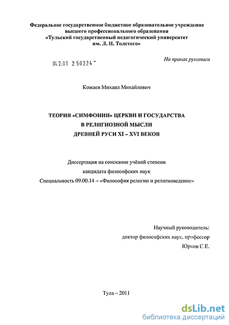 Научная новизна диссертационного исследования заключена в целостной реконструкции и анализе религиозно-философской концепции государственно-церковных отношений в Древней Руси XI – XVI вв., в основе которых лежит принцип «симфонии» властей: