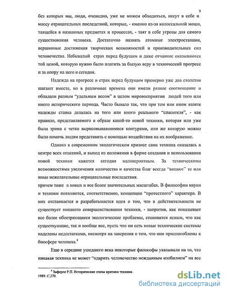 Однако в современном экологическом кризисе сама техника оказалась в центре всех опасений, и выход из положения в форме создания и использования новой техники кажется сегодня маловероятным. За техническими возможностями увеличения количества и качества благ всегда "витают" те или иные нежелательные отрицательные последствия. причем тоже в новых и все более значительных масштабах. В философии науки и техники появляются, соответственно, концепции "протестного" характера. В них отстаивается и разрабатывается идея о том, что в действительности не существует никакого совершенствования техники, - напротив, как показывает все более обостряющиеся экологические проблемы, становится ясным, что как существующие, так и вообще все, пусть что ни есть новые технические системы наделены недостатками, несмотря на заверения о том, что они приспособлены к биосфере человека.4