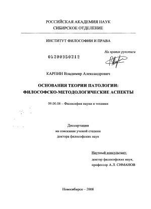 Предметом исследования является система философско-методологических принципов построения теории патологического процесса.