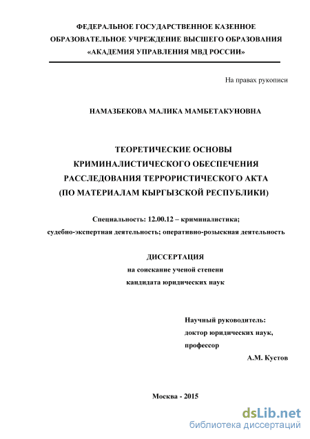 Глава 1. Положения и категории криминалистического обеспечения расследования террористического акта