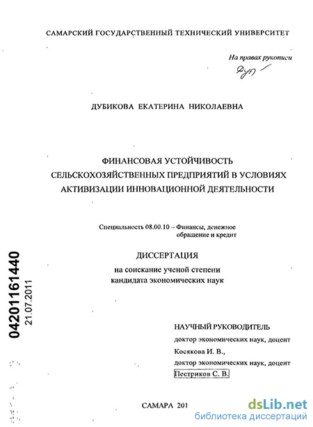 Объект исследования - финансовая устойчивость и инновационная деятельность сельскохозяйственных предприятий Самарской области.