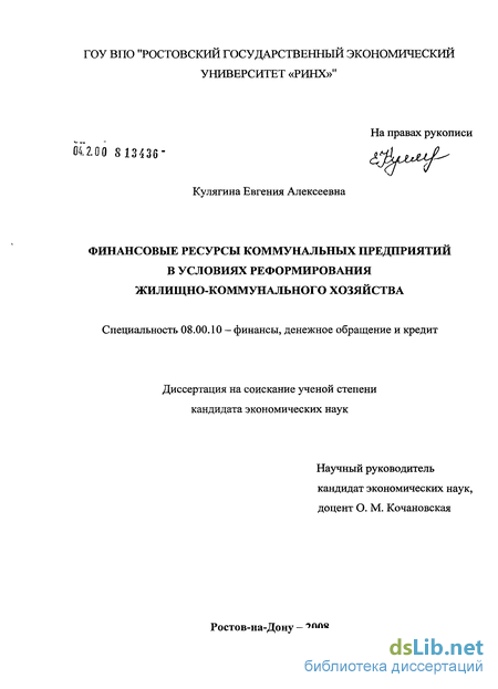 В этой связи, проблема совершенствования управления финансовыми ресурсами коммунальных предприятий в условиях реформирования жилищно-коммунального хозяйства является особо актуальной, что и предопределило выбор темы диссертационного исследования, постановку ее целей и задач.
