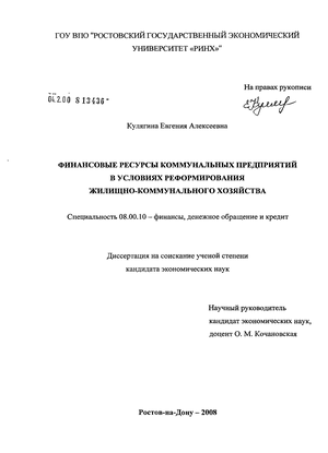 Предметом диссертационного исследования являются финансовые отношения, возникающие в процессе формирования и использования финансовых ресурсов коммунальных предприятий.