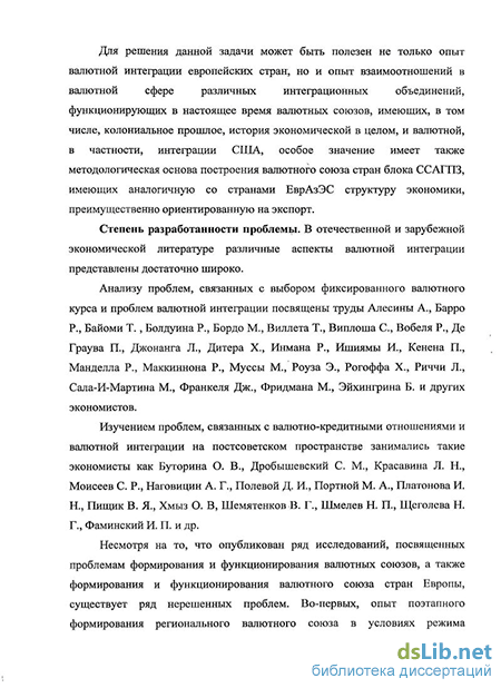 Степень разработанности проблемы. В отечественной и зарубежной экономической литературе различные аспекты валютной интеграции представлены достаточно широко.