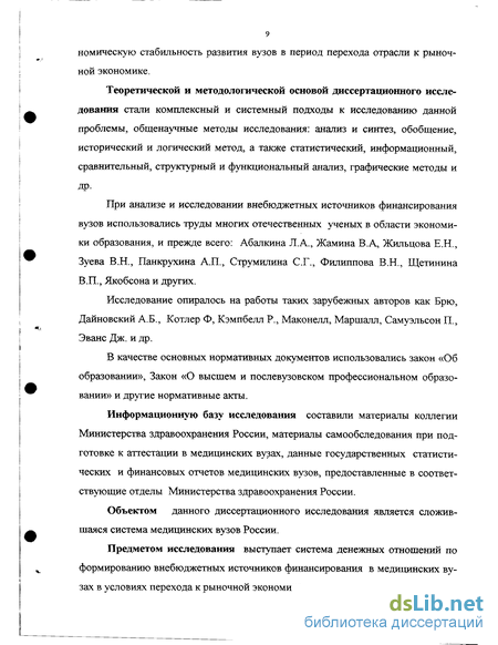 ДР При анализе и исследовании внебюджетных источников финансирования вузов использовались труды многих отечественных ученых в области экономики образования, и прежде всего: Абалкина Л.А., Жамина В.А, Жильцова Е.Н., Зуева В.Н., Панкрухина А.П., Струмилина С.Г., Филиппова В.Н., Щетинина В.П., Якобсона и других.