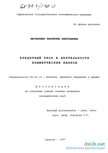 Предметом исследования является действующая практика оценки и управления кредитным риском в коммерческих банках России.